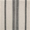 - Seat upholstered in neutral linen fabric with woven black stripe pattern