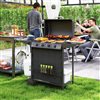 Ignite your garden BBQ with the Outsunny 5 burner portable gas BBQ grill! Featuring a spacious 361.3 sq. in. (2331 cm²) grilling area and a warming rack, you'll have plenty of space to cook up a feast. The convenient side burner keeps sauces and sides simmering while your main course sizzles to perfection. With individually ignitable and controllable burners and a built-in dual-scale thermometer, achieving optimal grilling temperatures has never been easier!