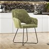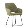 Elevate your dining space with the Giovanni Accent Dining Chair, a modern yet cozy piece that exudes sophistication. The soft, velvety upholstery, underscored by the boldness of black metal cross sled legs, delivers modern elegance that immediately commands attention. Its ergonomic design provides excellent support, while the padded seat and arms ensure comfort during long meals or conversations. Whether you're furnishing your dining area or adding a stylish accent piece to your living room, the Giovanni chair effortlessly combines style and comfort. Elevate your living space with the iconic mid-century silhouette of the Giovanni chair and relish the fusion of comfort, style, and lasting quality.