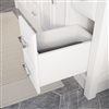 The vanity fuses contemporary sensibilities with polished, transitional design to create a timeless focal point for your bath space. The inch and a half thick countertop is crafted with natural and engineered materials in order to minimize maintenance and fragility, yet emphasizing aesthetics and practicality. Patent product design: #153683