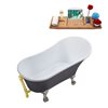 Streamline 55.1-in Gray/Brushed Gold Acrylic Oval Reversible Drain Clawfoot Bathub with Tray