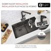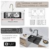 This Stylish sink combines a stainless steel double bowl with a slim divider and a functional ledge with integrated accessories, including a colander, roll-up drying rack, and cutting board. Handcrafted from 16-gauge stainless steel, it features a modern, easy-to-clean, scratch-resistant graphite black finish. The sink resists rust, corrosion, and heat, while offering soundproofing with protective coatings and rubber pads. The package includes luxury basket drain strainers, bottom grids, and meets North American plumbing standards.