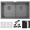 Stylish Undermount 32-in Graphite Black Stainless Steel Double Bowl Workstation Sink w/ Black Accesories