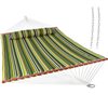 Sunnydaze Decor Melon Stripe 2-Person Quilted Hammock w/ Spreader Bar and Pillow