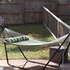 Bring comfort and style to any yard, patio, deck, front porch, campsite, or any other outdoor space with this quilted hammock! The hammock includes a detachable pillow (that attaches with buttons) for a comfortable position when napping or relaxing after a long day. Simply hang the hammock between trees, posts, or on a 12 to 15-ft hammock stand (stand not included). This 2-person hammock is made from a durable polyester material that is dye-treated to make it UV resistant, ensuring outdoor relaxation for years.