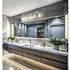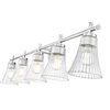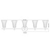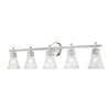 Cool and understated, this five-light vanity fixture pairs a brushed nickel finish with glistening fluted glass for a look that’s equal parts refined and romantic. The crystal-inspired clear glass shades create a glow that feels light, airy, and endlessly polished. It’s a timeless accent for spaces that call for quiet beauty.