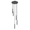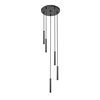 A modern five-light LED chandelier features a staggered, spiralling fall of slim lights, creating a chic silhouette for your living space. From the Forest collection, it boasts a matte black finish for maximum contrast and character. Integrated LEDs are slim and precise, offering a custom ambiance with dimming capabilities to complement energy efficiency.