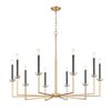 A stunning piece of craftsmanship takes a new turn in interior illumination as this ten-light chandelier spreads lighting to highlight dining ensembles, living rooms, and foyers. Modern gold finish steel construction distributes charming candelabra lights with bonus elegance bobeches, infusing a form of glam. Dimming features make this fixture an ideal choice for both mood lighting and round-the-clock functionality.