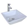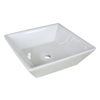 It features a square shape. This vessel is designed to be installed as an above-counter vessel. It is constructed with ceramic. This vessel comes with an enamel glaze finish in white colour. This modern vessel product is CSA certified. It is designed for a Nonefaucet.