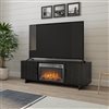 Warm up your living room or man cave with the Ameriwood Home Southlander TV stand with fireplace. This stand can accommodate most flat-screen TVs up to 60-in wide or 95 lb. Made of laminated particle board, the classic black oak wood grain finish and black H panel feet and black hardware give the stand a fresh look.