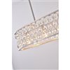 The frame is made out of metal, and it comes with clear crystals hanging drops. The adjustable rod link makes this fixture suitable for most ceiling heights.