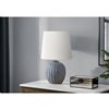 Switch up your living room, bedroom, or office into a chic haven of stylish decor with our 19"h table lamp. Created from high-quality grey resin, this lamp features a visually stunning, fluted, textured finish base in a concrete-look that adds a touch of elegance on any console, nightstand, end or side table. The soft ivory fabric shade casts a warm ambiance, perfect for creating a cozy atmosphere in a bedroom, living room, or office space. The convenient on/off turn knob switch that operates a 60W standard bulb (not included), allows for easy accessibility to illuminate a room, making this decorative lighting the ideal choice for any modern setting. Backed by a 2 year limited warranty against manufacturer defects, this accent lamp is a made with reliable materials making it a smart and stylish investment for your home decor.