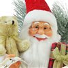 Santa is ready to deliver joy from atop a festive train car. Dressed in his traditional suit, he holds a plush tan teddy bear and a wrapped gift. Seated on a green, red and antique gold locomotive accented with a flocked wreath. Some assembly required. This 24-in display figure is for indoor use only and not intended as a toy.