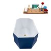 Streamline 28.7-in W x 63-in L Blue/Brushed Gold Acrylic Oval Center Drain Freestanding Bathtub with Tray