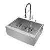 Classic style meets modern substance in the durable, satin-finish VIGO® 30" Camden Stainless Steel Farmhouse Kitchen Sink. This spacious, apron front sink also comes fully integrated with SoundAbsorb™ technology for a quieter sink that minimizes noise and condensation. Adding to the modern style is the included dual-function VIGO® Edison Pull-Down Kitchen Faucet with 360° swivel spout. Comes complete with protective sink grid, strainer and soap dispenser.