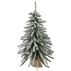 The Flocked Mini Village Pine is our series of small tabletop trees and features short pine needles in a mix of light and dark green with a coating of "snow". The tree has a lovely downswept shape enhancing its realistic quality. It comes potted in a rustic brown burlap base. Ideal for adding a winter wonderland touch to your decor. Product Features: Unlit. 201 tips. 0.75" wide tips. Medium profile tree. Recommended for indoor use only. No assembly required – tree comes in 1 piece. Tree cannot be removed from the rustic burlap base. Dimensions: 24" high (from the base of the stand to the top of the tree). 12" base diameter (at the widest point). Material(s): PVC/metal/burlap/flocking. Note: Branches are compressed for shipment and need to be fluffed out upon arrival to look like the photo.