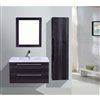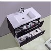 This modern wall mounted Bathroom Vanity features an elegant wood embossed deep textured melamine finish. Its simple, minimalistic look is sure to modernize and liven up any bathroom design, whether dark, light or in between, and contrasts beautifully with any ceramic tiling style. Its countertop is made from a durable acrylic material less likely to break then traditional ceramic or porcelain. It is also easier to clean and requires minimal maintenance.
