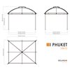 The Phuket sun shelter provides the perfect facelift to any backyard or patio space. It boasts a stylish modern frame and a high quality polyester fabric top, along with polyester decorative side curtains and nylon mosquito netting. This allows for added ventilation and protection during warm summer days. Its lightweight, powder-coated steel frame offers strength and stability while allowing for simple setup and assembly.