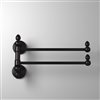 Designed with multi-use and modernity in mind, this space saving double arm towel bar is an ideal addition for your bathroom and/or kitchen. Each arm swivels independently and snuggles close to the wall when not in use, excellent to keep your bathroom or your kitchen organized!