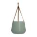 - Modern soft green planter with smooth satin finish and faux leather hanger, complements any décor