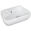 It features a unique shape. This vessel set is designed to be installed as an above-counter vessel set. It is constructed with ceramic and it comes with an enamel glaze finish in white colour. It is designed for a 1 hole faucet.
