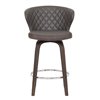 The Mynette swivel counter stool is upholstered in brown faux leather and features a unique quilted stitch pattern. This stool is a perfect fit in any modern or contemporary home and features a wooden base with convenient swivel function. 26 inches counter height.