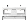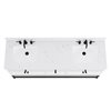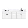 Put “sink” appeal into your bathroom with the Paisley 72-in Vanity Combo in White with Cala White Engineered Top. Paisley features clean lines and a sophisticated colour combination. Soft-closing hardware and a solid wood frame testify to Paisley’s quality. You can remove the open shelf base to convert from freestanding to wall mounted. The elegant, engineered top is pre-installed and pre-drilled for 8-in faucets and includes dual vitreous china undermount sinks. Beautiful and practical, Paisley is perfect for any bathroom.