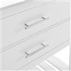 - Bright white finish and two sets of hardware (brushed nickel and matte black) seamlessly blends with a variety of decors