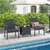 With enhanced comfort seating, the two chairs in this patio set are filled with quick-drying foam, making them soft and elastic. This allows for a cozy seating experience that can be enjoyed outdoors for a long time. The set also includes a functional coffee table with a double-tier design, providing ample space for snacks, beverages, and books. Made from durable tempered glass, the table is resistant to scratches and easy to clean. Furthermore, the PE rattan is not only elegant, but also anti-fading for long-time use.The patio set is suitable for a variety of settings, whether by the poolside, in the backyard, garden, or even on a balcony.