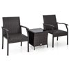 Costway 3 -piece Patio Conversation Set Wicker Chair Tempered Glass Table Cushioned Seat