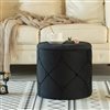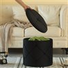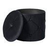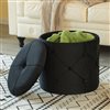 Fabulaxe Modern Black Velvet Round Integrated Storage Ottoman