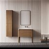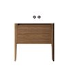 - Freestanding vanity made of solid wood and moisture-resistant plywood with American walnut veneer, ensuring durability in wet conditions