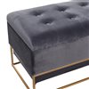 - Features a metallic gold iron finish and a grey velvet fabric finish