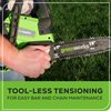 - Tool-less chain tensioning for quick adjustments so you can get back to the task at hand