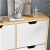 HOMCOM's shoe storage cabinet is a must-have for every home. It features four flip drawers that can hold up to 16 pairs of shoes, with the top providing room for smaller items like mail and keys. The adjustable shelf in the flip drawers offers additional customisable space. This unit will bring elegance and organization into your space. It comes with anti-tipping straps for safety that will be appreciated by households with small children and pets.