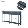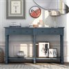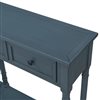 Elevate your living room or entryway with the rustic charm of this console table. Designed with classic appeal, it features a rich navy finish and ample storage space with spacious drawers and a bottom shelf. Crafted from solid wood, this table provides stability and durability, making it a perfect addition to any home. Its weatherworn look, combined with elegant tapered legs and decorative knobs, brings both functionality and style to your space.