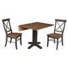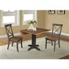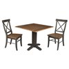 International Concepts 3-Pc 36-in Solid Wood Square Dual Drop Leaf Dining Table Set w/ 2 Chairs - Hickory/Washed Coal