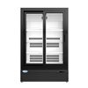 35 In. 10 Cu. Ft. Low Height - Aisle End Retail Display Merchandiser In Black For Supermarket, Deli, No Frost Maximize product visibility and boost impulse sales with the KoolMore 35-Inch Low-Height Display Merchandiser—designed for aisle ends, checkout zones, and other high-traffic retail spaces. Its low-profile design (just 55.6 inches tall) ensures easy customer access without blocking sightlines, while the spacious 10 cu. ft. interior holds up to 348 cans or 120 bottles on six adjustable, heavy-duty shelves. Dual sliding glass doors with self-closing action and low-E insulation help maintain consistent temperatures between 32°F and 50°F, supported by a ventilated cooling system for even airflow. Brilliant LED lighting on both sides highlights your products, and the digital controls make temperature management effortless. This unit is built for demanding commercial use with automatic defrost, a galvanized steel interior, and a durable coated metal exterior.