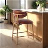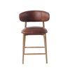 LH Home Milo Modern Brown Genuine Leather Back/Seat Counter Stool - Natural Wood Frame