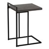 - C-shaped accent table with a metal base that can be slid under a sofa or bed to keep items close by when you are seated