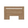 Effortlessly elevate your space with this modern headboard – a stylish and functional centrepiece that seamlessly blends contemporary design with practical functionality. This clever headboard boasts the perfect combination of clean lines and a minimalist aesthetic, adding a touch of sophistication to your bedroom decor. Crafted from high-quality engineered wood, this headboard showcases the natural grain colour variation, bringing an organic touch to your space. Plus, with a one-year warranty, you can trust in the durability and quality of your new brown oak finish headboard.