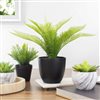 Don't let your brown thumb hold you back. Show off your love of plants with this artificial Pinus arrangement. This faux plant is held in a black pot with faux dirt and stone for a realistic look. Easily maintained this artificial plant is perfect for your home or office. Features: Artificial Pinus plant in a pot. Nestled inside a black plastic pot. The plant is set in a faux dirt and stone for stability. Recommended for use in Doors only—if using outdoor keep in a covered area. Overall dimensions: 12-in high x 11-in diameter. Pot dimensions: 4-in high x 4.5-in diameter. Material(s): plastic