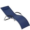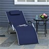 Outsunny Deck Chair Grey Metal Stationary Chaise Lounge Chair with Blue Solid Seat