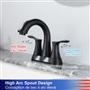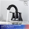 4 in. 2-Handle bathroom faucet is elegant. The high arc spout allows for plenty of clearance for washing hands or delicate. A matched ABS pop-up drain and water supply lines are included. This faucet has a flow rate of 1.2 GPM @ 60 PSI and is 100% pressure system tested. Solid brass body construction and drip-free ceramic cartridge ensure reliable quality. The two-handles design is convenient for precisely controlling both water temperature and flow.