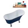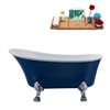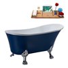 Streamline 27W x 55L Matte Dark Blue Acrylic Clawfoot Bathtub with Polished Chrome Feet and Reversible Drain with Tray