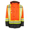 This high-visibility parka is made from polyester and equipped with a quilted lining and polyfill insulation. With its polyurethane-coated shell with sealed seams, it is water-repellent and will protect you from snowy and rainy conditions. Its detachable and adjustable hood accommodates a hard hat. It has reflective tape over contrast stripes to ensure your visibility, in addition to adjustable cuffs for your comfort and multiple pockets for greater convenience.