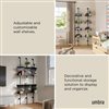 - Simply assemble the pole, mount to 2 locations on your wall, add the 4 shelves, and screw them in place with included set screws
