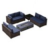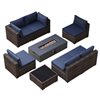 UPHA 8-Piece Patio Conversation Set with 56-In Iron Fire Pit Table and Polyester Navy Blue Cushions