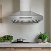 Bring a professional quality and performance to your kitchen with the VICTORY Breeze. Made in Canada, this range hood is made with high quality stainless steel, an all-metal blower and stainless steel filters making it efficient, easy to use and easy to clean. Can be used with a standard 6-in round duct or an 8-in round duct for better performance and a quieter experience. The four bright warm dimmable LED lights provide great visibility and the filters are dishwasher safe and reusable. This range hoods' 22-inch depth also provides great coverage over your burners making it more effective at capturing harmful smoke and odours.
