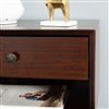 Looking for a side table that won’t weigh down your space? This mid-century modern nightstand made of beautifully stained pine and antique-finished metal hardware could be the one for you. With beveled front details, open and closed storage for easy accessibility, and its solid wood make-up, this piece is a triple threat of character, function and durability. Made of wood responsibly harvested from renewable forests, this eco-friendly nightstand will allow your environmental conscience to sleep easier. Plus, assembly is a piece of cake—just add legs to the top portion and you’ll be good to go.